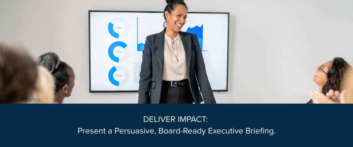 In just 12 weeks, you’ll build the credibility, clarity, and trust to be seen as an executive peer — and the influence to help shape strategy at the highest level.